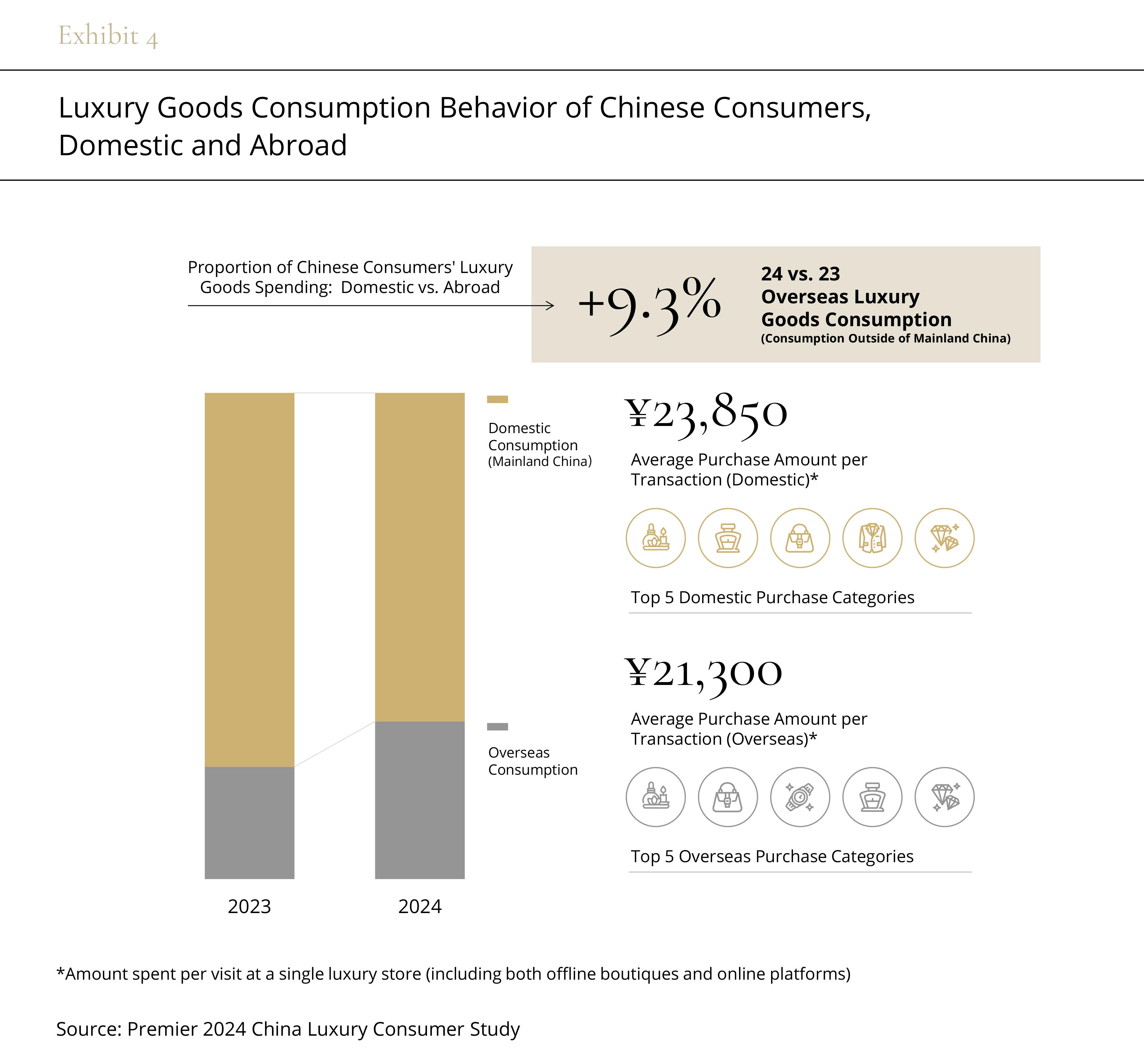 Focusing on domestic consumption, the average single purchase amount for Chinese consumers in 2024 reached ¥23,850, 12% higher than the average spending on overseas purchases. This disparity is driven by both the impact of duty-free and price differences, as well as the domestic preference for high-priced categories such as fashion and jewelry. This trend is closely linked to the more intimate and reliable service in China, as well as the convenience of visiting stores after new arrivals.