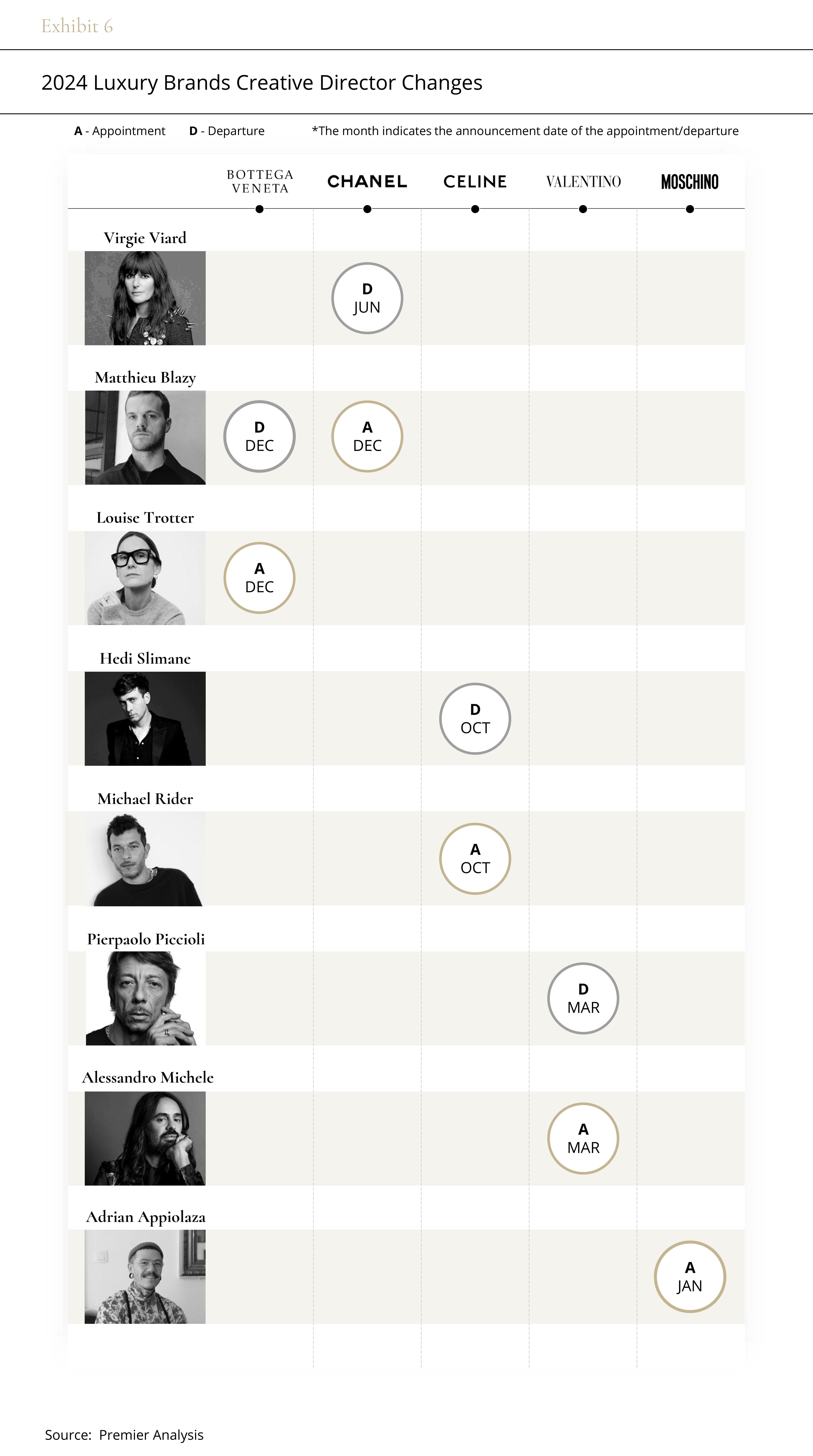 In 2024, the luxury industry witnessed a wave of leadership changes, from creative directors to top executives. This large-scale reshuffling reflects brands’ strategic responses to market headwinds and underscores their urgency in addressing the creative stagnation crisis and improving managerial efficiency under mounting performance pressures.