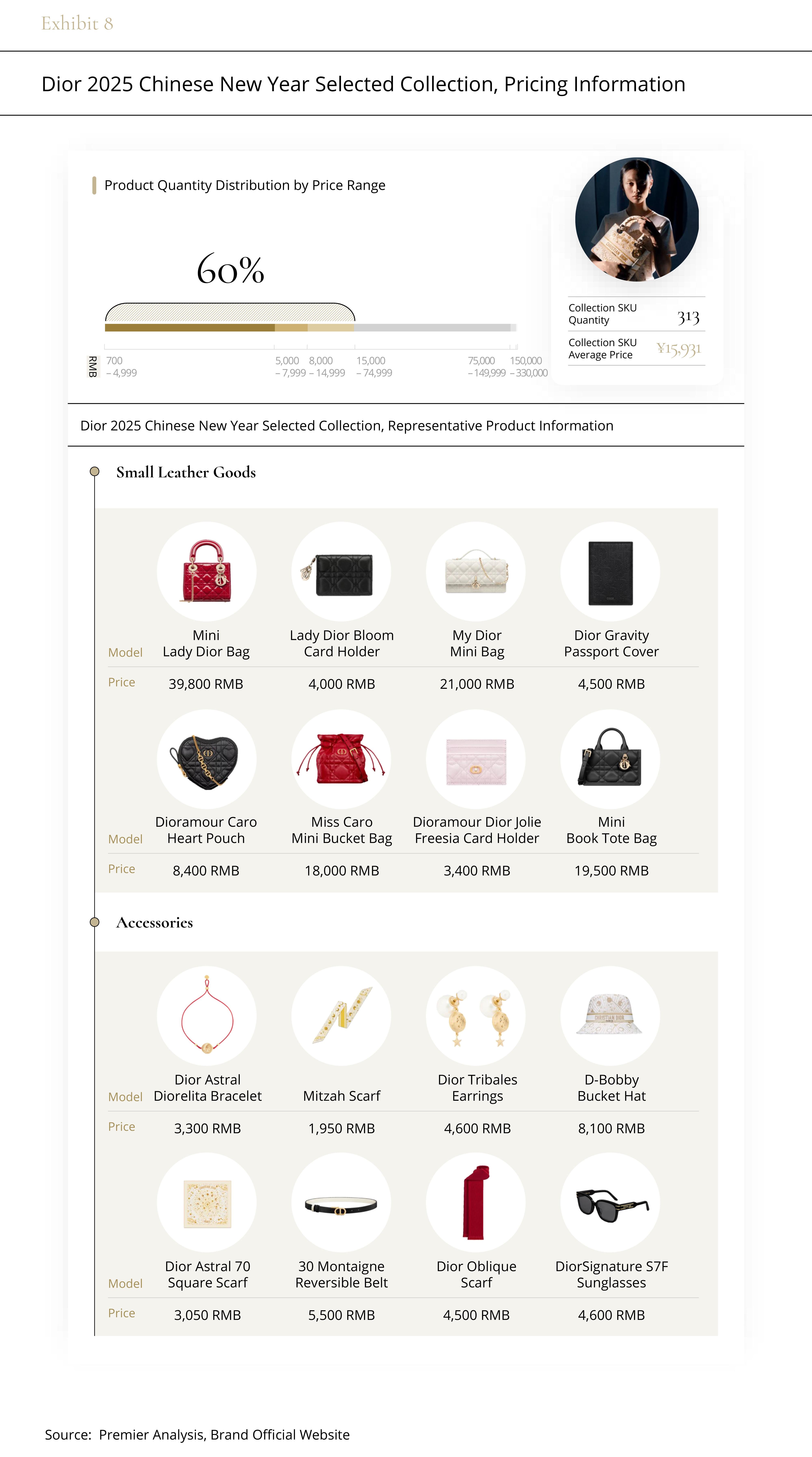 Festive seasons and key emotional moments present ideal opportunities for brands to activate the "Little Indulgence" trend. In recent limited-edition collaborations and holiday capsule collections, luxury brands have strategically increased the proportion of entry-level products to strengthen their appeal to a broader audience. In some brands' Chinese New Year collections, SKUs priced below RMB 10,000 accounted for more than 50% of the assortment.