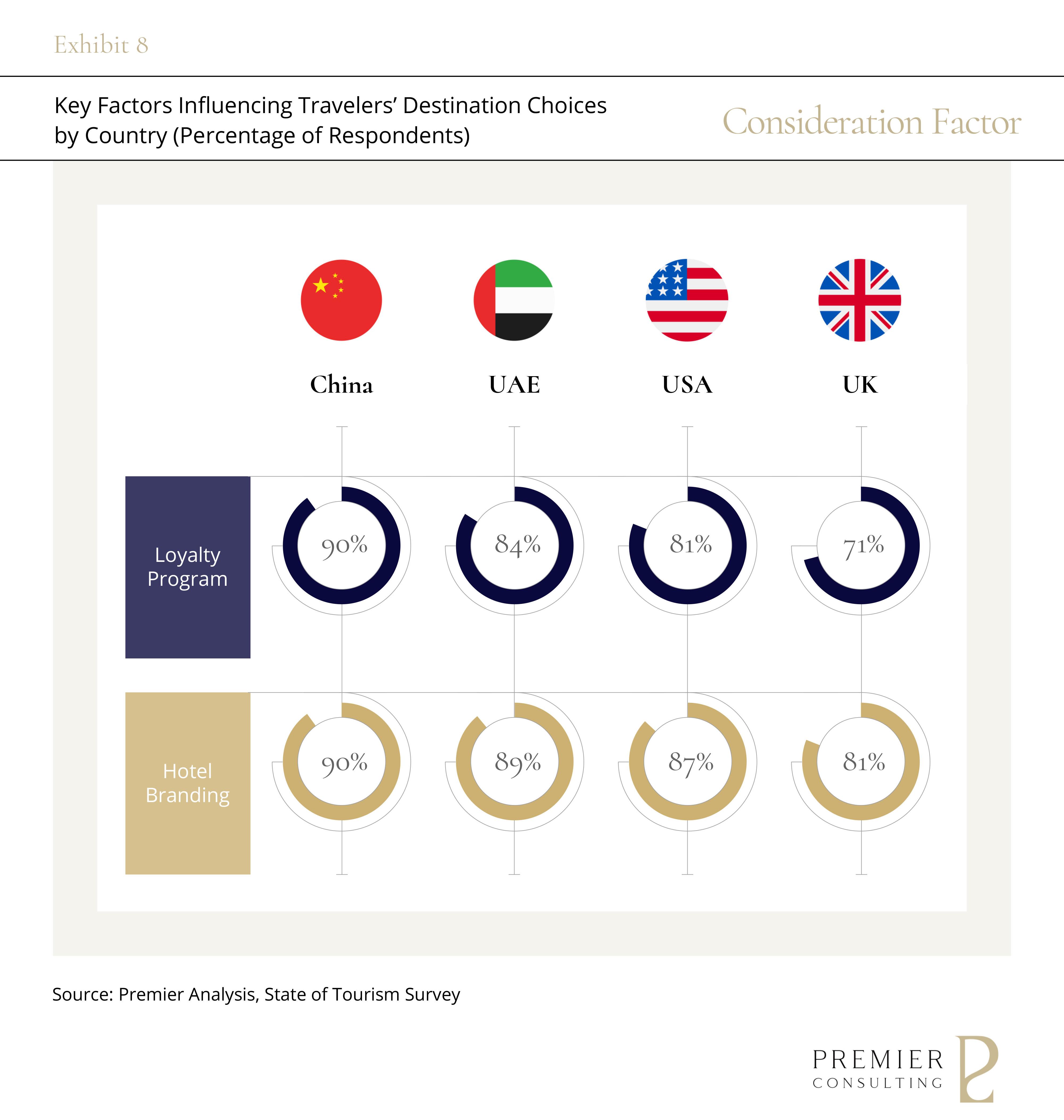 - Loyalty Programs are a Decision Factor, but Not Equivalent to Price Sensitivity: 68% of luxury travelers stated that loyalty programs are an important factor when choosing accommodation, a percentage significantly higher than that of ordinary travelers (41%) [Exhibit 11]. However, this does not equate to price sensitivity—it reflects a desire for elevated recognition.