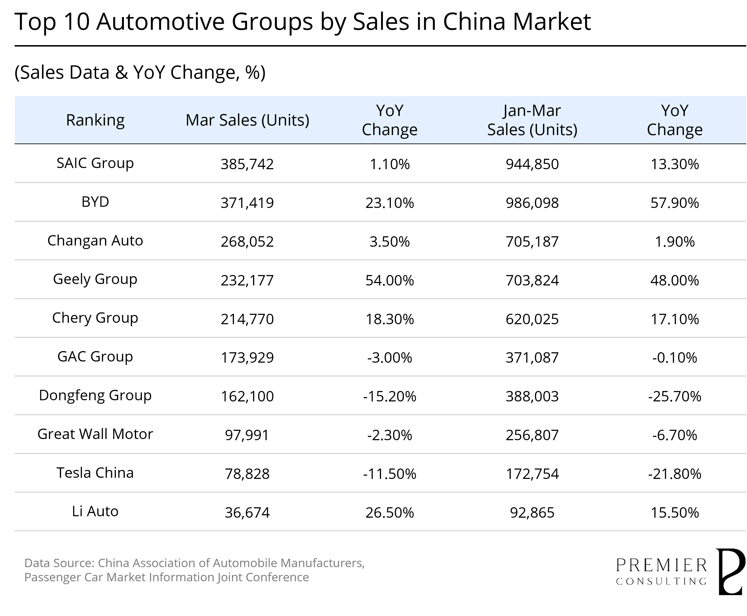 In contrast, many traditional car manufacturers faced significant challenges. Although SAIC Group retained the highest monthly sales volume at 385,742 units, its year-on-year growth in March was a modest 1.1%. Both Dongfeng Group and GAC Group continued to experience sales declines, with March volumes down 15.2% and 3.0% year-on-year, respectively. Great Wall Motor also failed to reverse its downward trend, with a 2.3% year-on-year decrease in March sales.