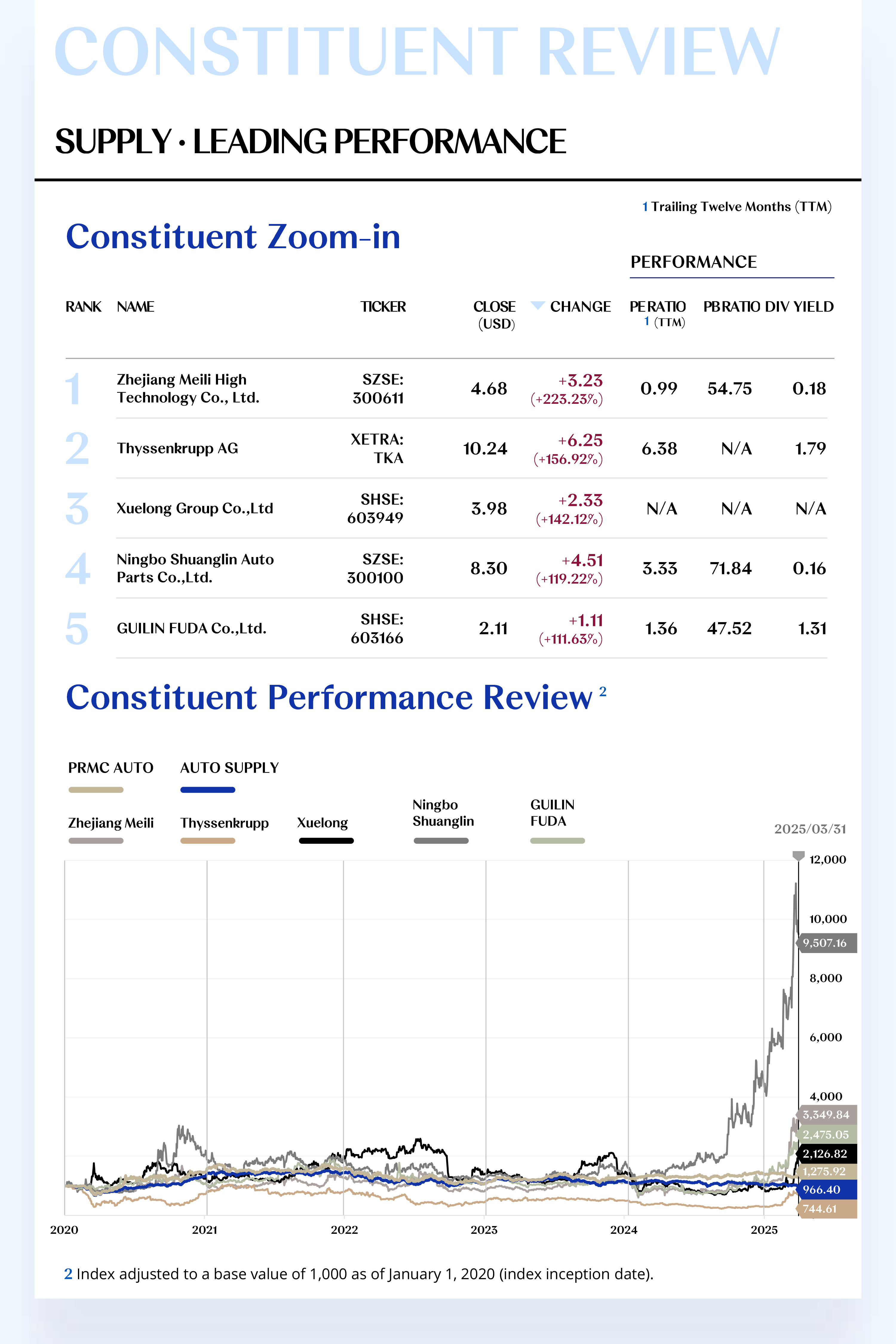Looking ahead to Q2 2025, the PRMC Auto Index is expected to maintain a volatile trend amid evolving capital market sentiment shaped by tariff adjustments and geopolitical risks. In the U.S., persistent protectionism is amplifying imported inflation risks, while shrinking household wealth and policy uncertainty weigh on consumption and corporate investment expectations, adding pressure to financial markets. In Europe, recovery remains sluggish, constrained by high interest rates and weak external demand, with manufacturing and retail sectors continuing to lag. By contrast, China’s automotive market is expected to sustain its consumption momentum, supported by macroeconomic stimulus measures such as ultra-long-term special government bonds and programs promoting the replacement of older consumer goods. The NEV sector, driven by electrification and intelligentization, is set to continue leading structural growth and serve as a key pillar supporting the index’s stabilization.